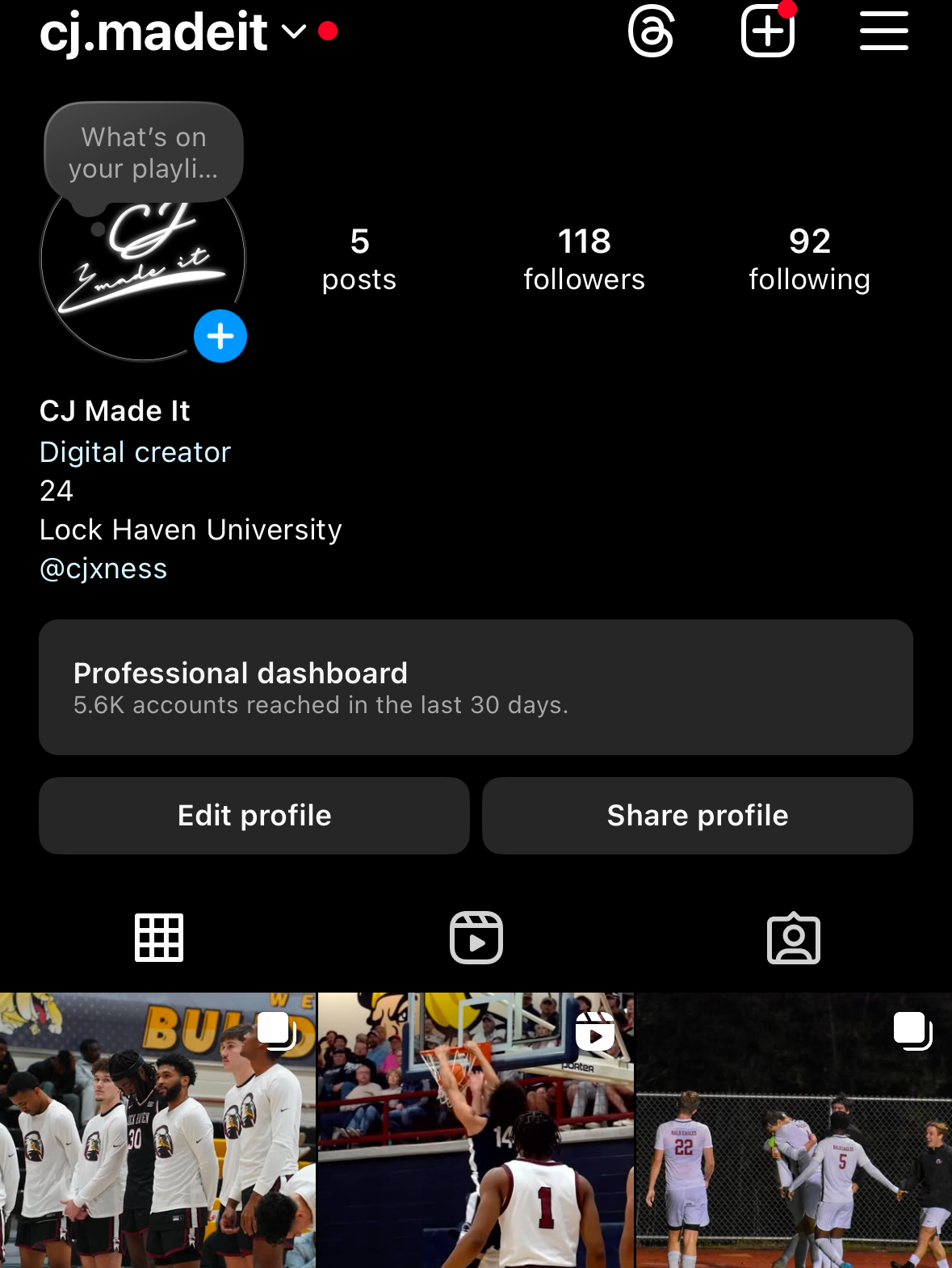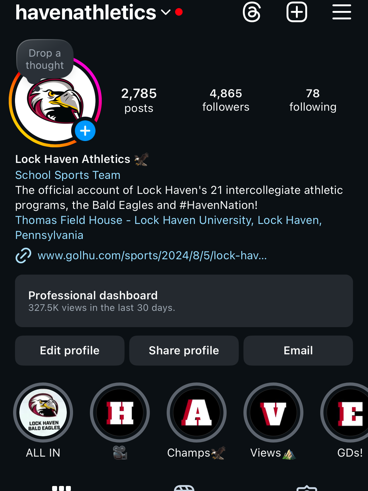 I am currently the social media manager for the Lock Haven Interim Athletic Director's Instagram, where we collab and create personable, entertaining, and interactive content, which was all edited by me on Adobe Premier Pro.